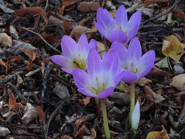 Bloeiende krokussen, o nee pardon herfsttijloos voor de kerk van Oostwold (met dank aan Hendrika):