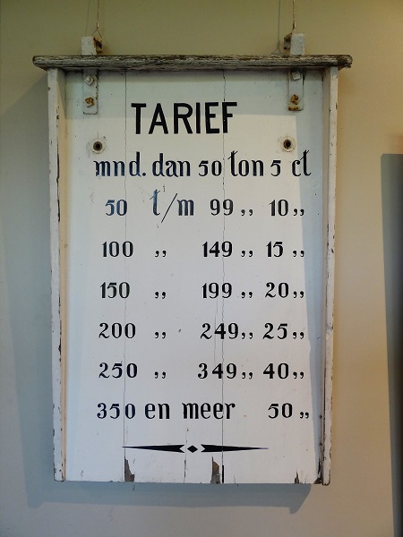 Bord met sluistarieven op de tentoonstelling over Leekster schippers in Museum Nienoord: