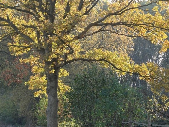 Hooiweg, Roderwolde – bijna alle bomen dragen gele stippen: