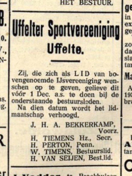 De commies waarvan hier sprake is, was mijn grootvader. Hij en zijn gezin woonden van 1923 tot 1934 in Uffelte, waar ook mijn vader geboren is. In het laatstgenoemde jaar verhuisden ze naar Havelte. Dat het bestuur over de dorpsverenigingen in Uffelte puur in handen bleef van boeren, is onjuist. Mijn grootvader zat in het bestuur van de ijsvereniging, de zwemclub en de kippenfokvereniging en ik neem aan dat de andere schaarse ‘burgers’ van Uffelte – en dan met name de onderwijzers – ook zo hun steentje bijdroegen.