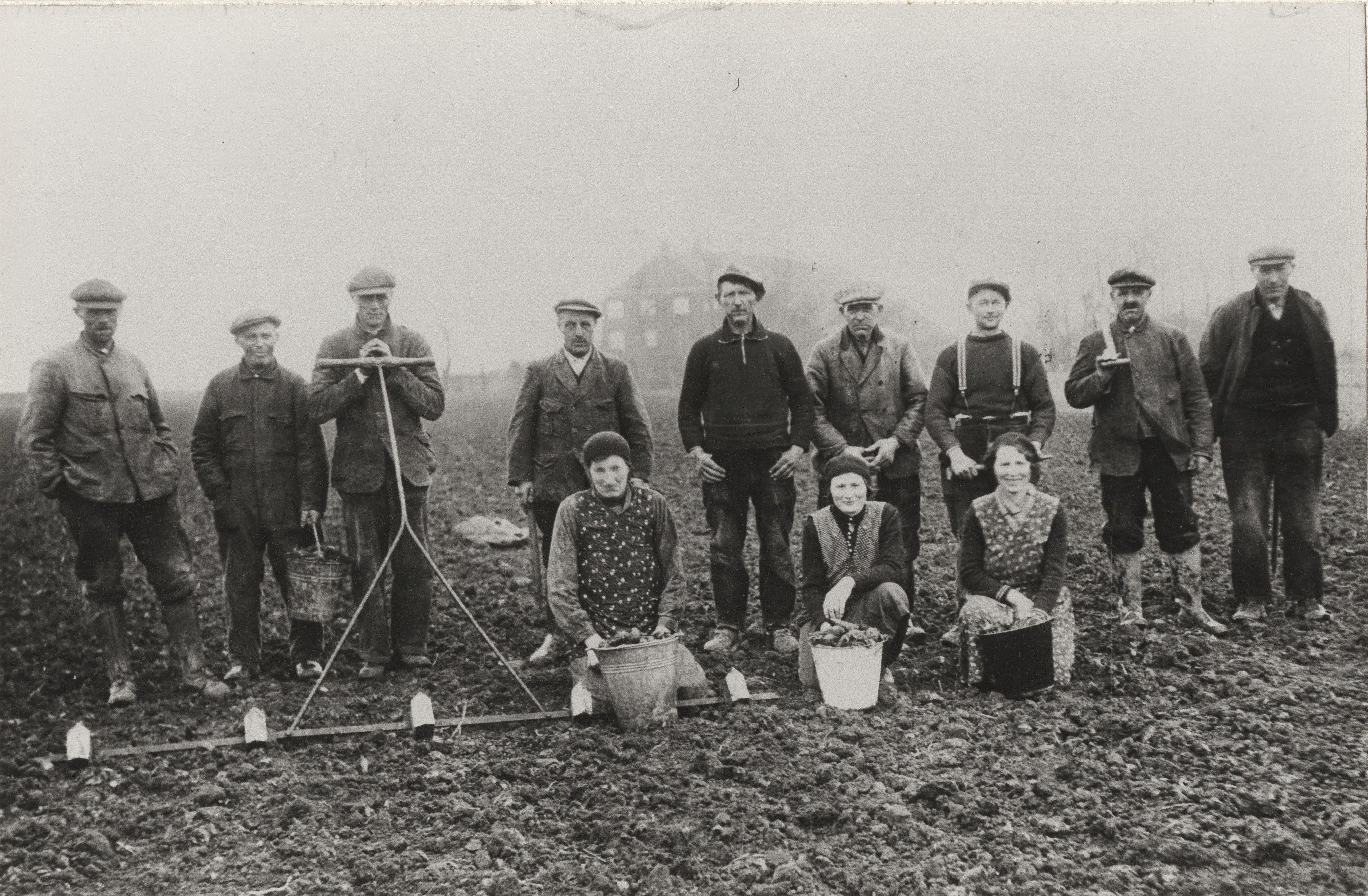 Dagloners bij het bieten poten op het land. Nieuw-Scheemda, jaren 30. Collectie Groninger Archieven 818-10704.
