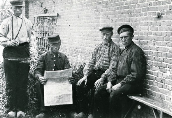 Landarbeiders met krant, ca. 1910. Foto: H. Mansholt. Collectie Groninger Archieven 818-17361.