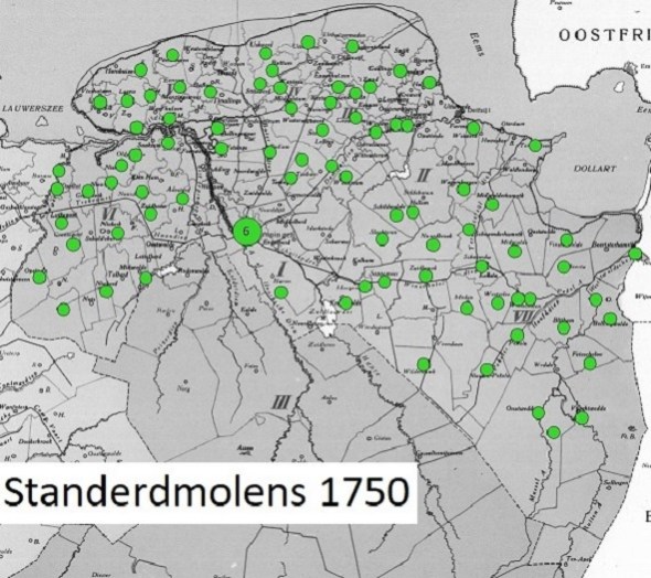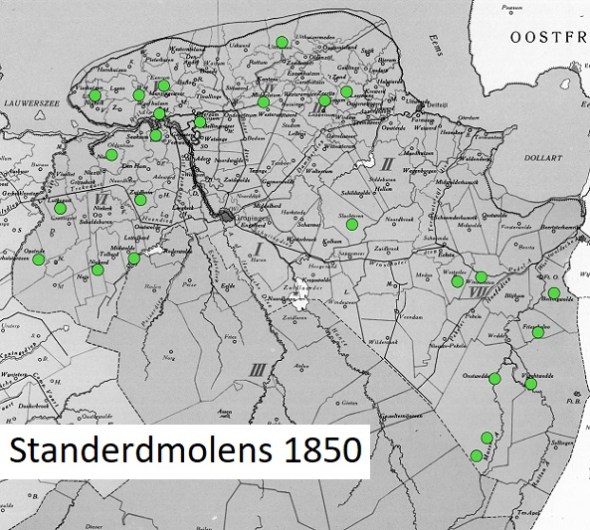 Voor 1656 waren er nog geen bovenkruiers in Groningerland. De primitieve middeleeuwse, maar volgens mij oneindig veel mooiere standerdmolens hadden hier nog het alleenrecht. Hoe deze hier verdwenen, is door Bob Poppen gedocumenteerd. De lijsten in diens artikel bleken dermate precies, dat ze heel goed bruikbaar zijn voor verspreidingskaartjes.