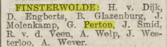 Dan de oudste van beide schoenmakers: Geert Perton (Finsterwolde 1864). In 1880 woont hij nog in bij zijn ouders Elzo Perton en Geeske Boog op het adres D 74 (later omgenummerd tot D 89) in Finsterwolde en heeft dus anders dan andere landarbeidersjongens (zoals zijn oudere broers) geen kost- en werkbaas waar hij bij inwoonde en werkte. Wellicht deed hij nog los werk. Op 1 augustus 1881 vertrok hij volgens het Finsterwolmer bevolkingsregister naar de naastgelegen gemeente Beerta, waar hij afgaand op het Beertster bevolkingsregister inwoonde bij een Adolf Tuin te Drieborg. Dit was inderdaad een schoenmaker. Sterker nog: het ging on de oom van Geert latere vrouw Antje Tuin! Behalve zijn ambacht, zal Geert hier dus kennis hebben gekregen aan zijn vrouw. Desondanks, of misschien wel juist om die reden, vertrok hij na nog geen jaar alweer naar een andere schoenmakerij, die van de gebroeders Roelf en Thomas Elles Jonker op het adres C 75 in Finsterwolde. Toen hij hier een jaar of drie had gewoond en gewerkt, werd hij remplaçant en vervulde hij de militaire dienst voor een boerenzoon uit Ulrum. Op 26 mei 1888 was hij afgezwaaid en vestigde hij zich als dienstbode bij de winkeliersfamilie Boneschans op de Ekamp bij Oostwold, terwijl hij een jaar later, inmiddels volwas schoenmaker zijnde, in het gemeentehuis van Finsterwolde trouwde en zich met zijn vrouw Antje Tuin vestigde in de dorpskom van Oostwold. Hier werden mijn grootvader en diens oudste zuster geboren. Maar het gezin heeft er maar vier jaar gewoond, want eind maart – begin april 1893 betrok het de nieuw gebouwde schoenmakerswoning aan de Klinkerweg in Finsterwolde.