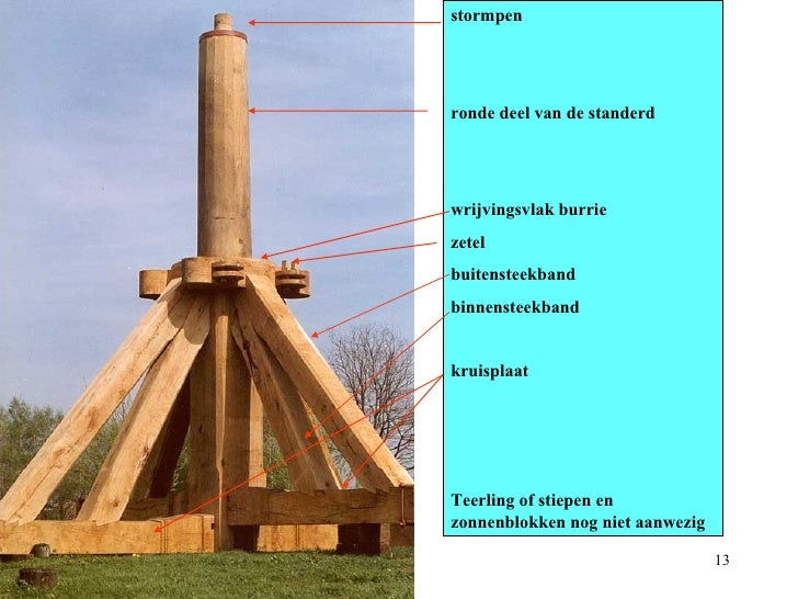 Het type van de standerdmolen ontstond in de Hoge Middeleeuwen in Vlaanderen en verspreidde zich eind twaalfde eeuw eerst naar Franse en Engelse kuststreken en vervolgens naar Duitsland en de rest van Europa. Anders dan het tegenwoordig dominante type windmolen, dat van de bovenkruier, werd de standerdmolen niet met de wieken op de wind gezet door alleen het kopje, maar door het algehele molenlichaam te draaien, een vrij pittig karwei, waar vast paardekracht aan te pas kwam. Die molenkast rustte en draaide op een ‘standerd’, een rechtop gezette, zware stam van zo’n 60 à 80 centimeter dik, die vanonder werd verankerd en geschoord met dikke balken. Bovenop de standerd verhinderde een ‘stormpen’ dat de molenkast kapseisde en weggleed, onderop steunde de molenkast ook nog, maar dan in veel lichtere mate, op een ‘zetel’ halverwege de standerd.