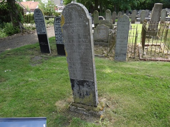 De letters waren toen nog redelijk leesbaar. Dat was al een stuk minder toen Hiltje Zwarberg in 2005 voor Graftombe.nl een opname van hetzelfde grafmonument maakte – van het letterzwart resteren nog slechts enkele plekjes en veegjes: