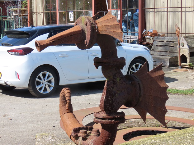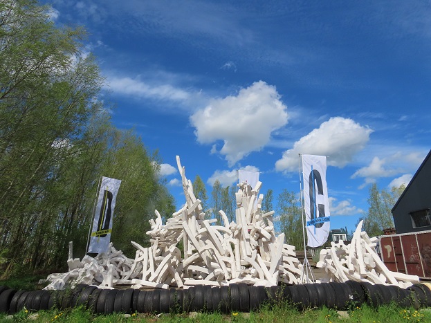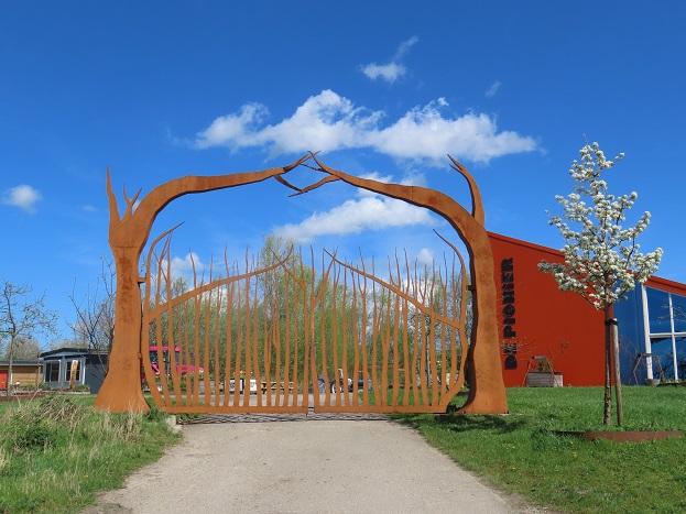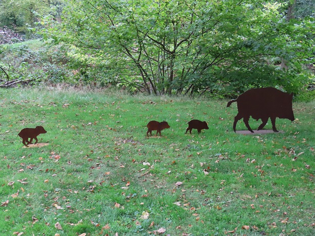 Op Nienoord bleek in meerdere panden en buiten een kunstexpositie aan de gang, Everzwijn met biggetjes van plaatstaal, gemaakt door Stoer Staal en Hout uit Oostwold: