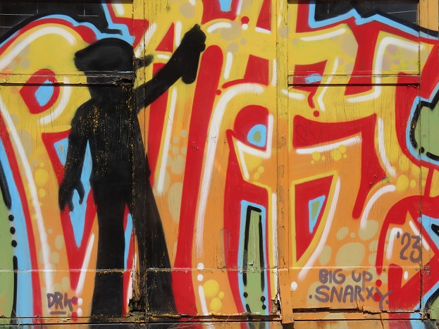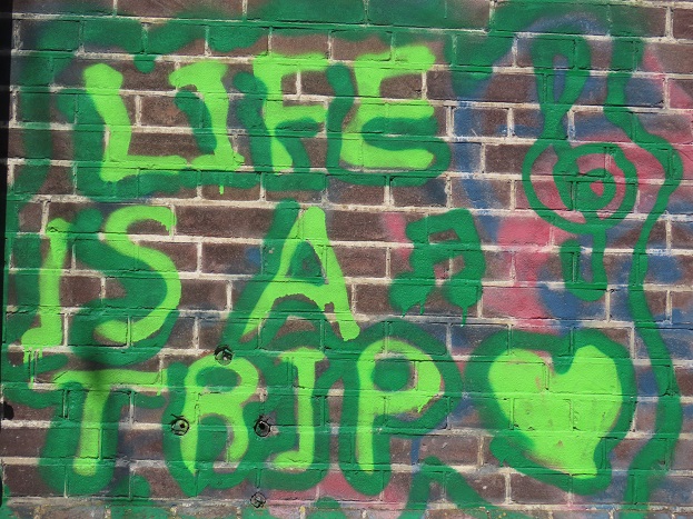Achter de open deur ontwaar ik een hele stapel reeds verwijderde hardboardplaten, beplakt met affiches die kennelijk over de uiterste verschijningsdatum heen zijn. Ik realiseer me dat hij de meterkast naast onze flat-ingang al voorzien heeft, en kijk achter me wat voor nieuwe poster daar nu weer hangt. Verdomd als het niet waar is: Serrano’s portret van Trump heeft nu ook eindelijk ons bereikt. Zij het zonder het Hitlersnorretje waarmee een Trumphater die afzichtelijke Trumpkop vrijwel overal elders in de stad heeft opgesierd. Al is dat natuurlijk slechts een kwestie van tijd. De Trunphater mag bij mij gerust een kopje koffie komen halen als het zover is. Krijgt hij er een lekker koekje bij.