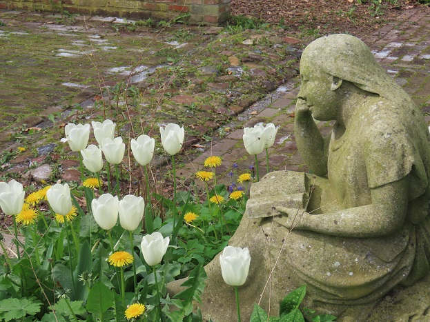 Weer buiten – voor het eerst zie ik de grafsteen van Does uit 1890. Does was de hond van jonkheer Johan Aemilius Abraham Van Panhuys, die Nienoord na de dood van zijn krankzinnige oom liet verbouwen en er in 1885 met zijn gezin en die hond kwam wonen: