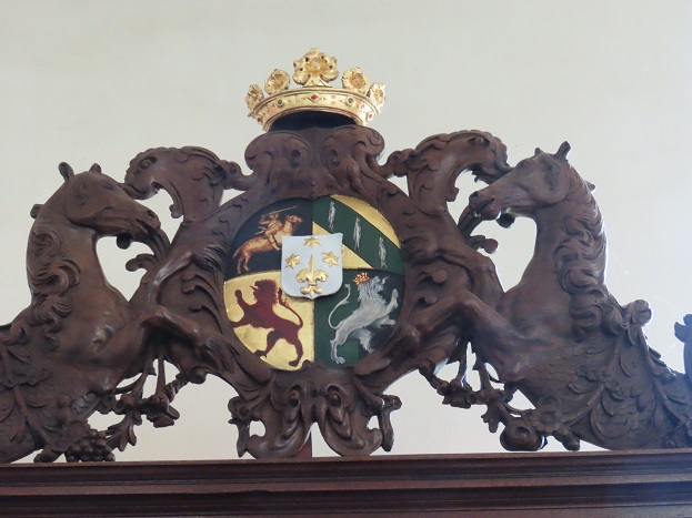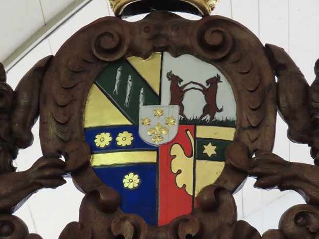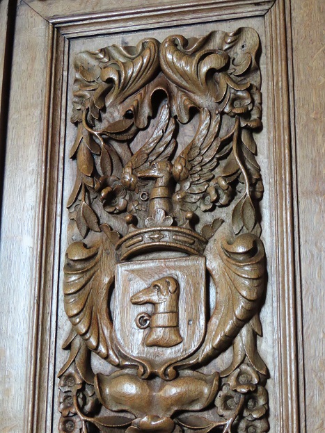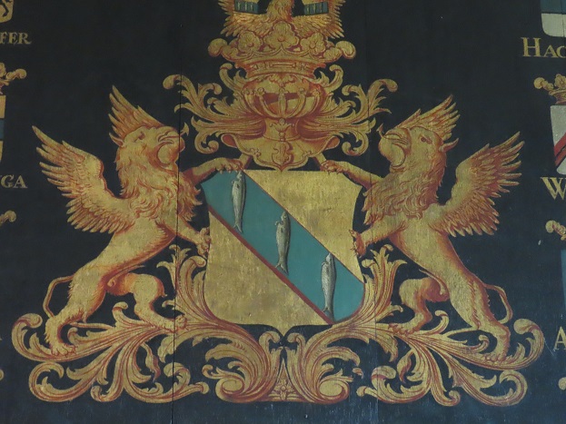 Het familiewapen Clant met zijn griffioenen en vissen: