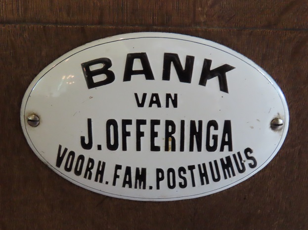Zitbanken bleven nog lang verhuurd in de kerk van Zuidhorn. Ene J. Offeringa erfde of kocht de bank van de familie Posthumus, maar zijn nazaten lieten het emaille eigendomsplaatje gewoon zitten: