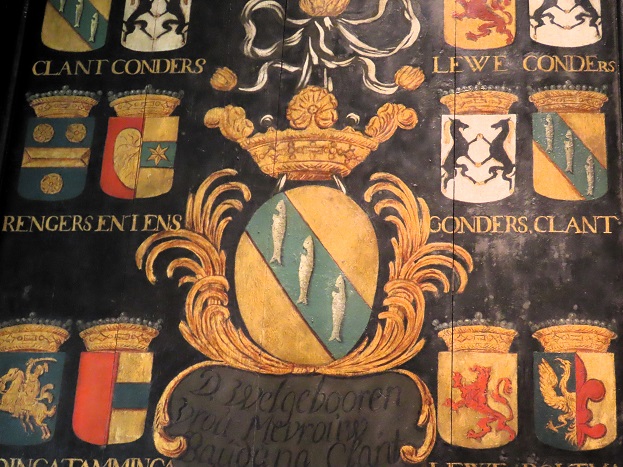 Qua ornamentiek op herenbanken lijkt de familie Clant van de Hanckemaborg wat beter vertegenwoordigd dan de Sikkema’s. Hier bijvoorbeeeld met verzwagerde geslachten zoals de Ripperda’s (Oosterwijtwerd) en de Lewes (van Aduard):
