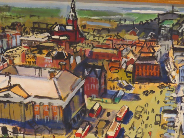 Jan van der Zee zocht het hogerop, boven de Grote Markt in Stad. Dit schilderij komt uit de collectie van de gemeente Groningen en zal normaliter dus wel op een wethouderskamer hangen: