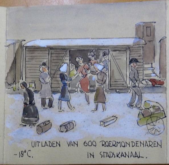 De 600 Roermondenaren deden de reis per goederentrein, destijds een hachelijke onderneming met alle geallieerde jachtvliegtuigen in de lucht. Het uitladen van 600 Roermondenaren in Stadskanaal, die avond, bij 18 graden vorst: