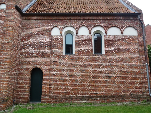 Geplaatst op: 12 september 2021 Hoort bij: Kunsten, Westerkwartier 6 reactiesHoewel er een groot Monumentendag-spandoek voor de westelijke gevel hing, bleek de kerk van Hoogkerk, ook in weerwil van diverse aankondigingen, gesloten, Tenminste, om twintig voor twaalf ’s ochtends was dat zo. Daarom de buitenkant maar wat beter bekeken. Dit is het koor, oorspronkelijk uit de dertiende eeuw: