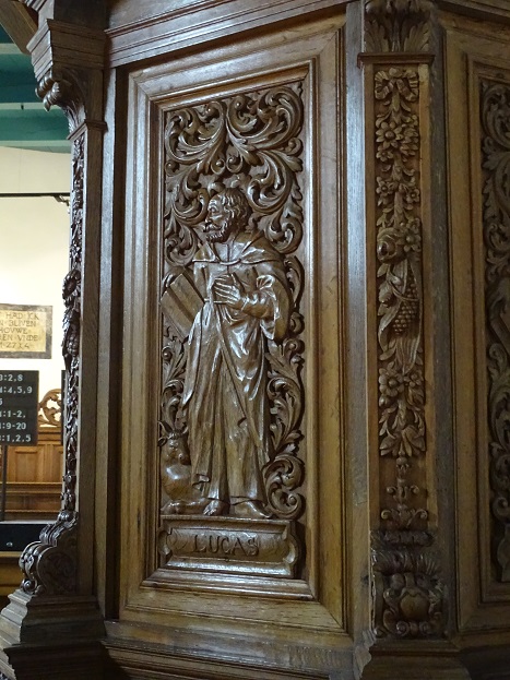 Kansel uit 1721 met de vier evangelisten – Lukas: