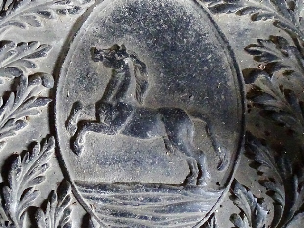 In de kerk daar – springend paard op grafsteen: