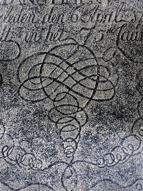‘Penwerk’, maar dan van een steenhouwer, op de grafsteen van Trijntien Jans Nienhuis, de vrouw van een Ommelander bestuurder, uit 1783: