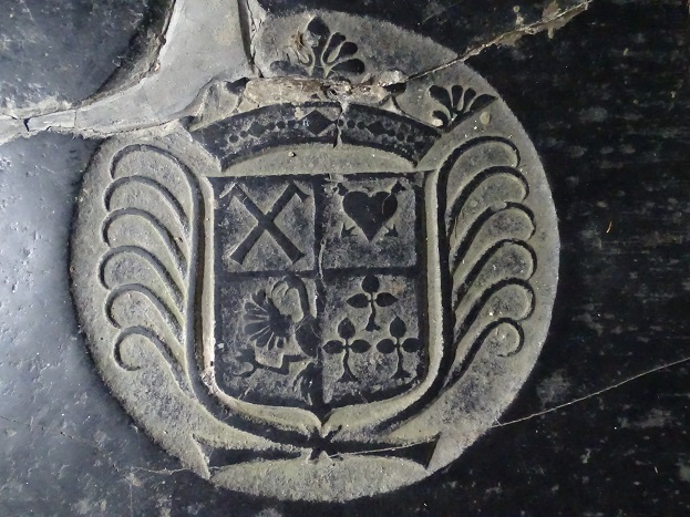 Wapen op het graf van een Hamster Schepper (waterschapsbestuurder), 1724. Dat dubbel doorschoten hart komt ons weer bekend voor: