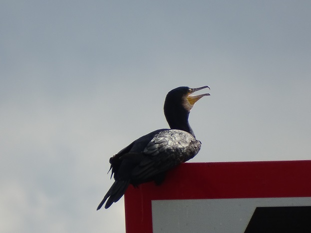 Zonnebadende aalscholver op de hoek van de Zuidwending en het Aduarderdiep: