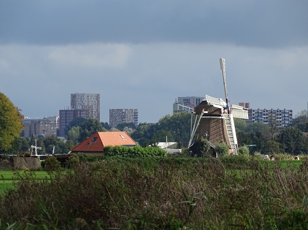 Molen de Jonge Held tegen de achtergrond van Vinkhuizen: