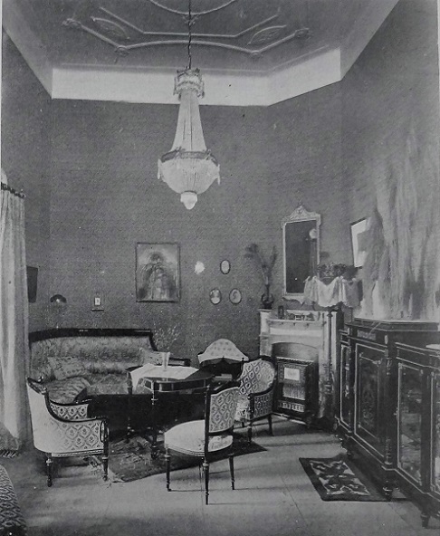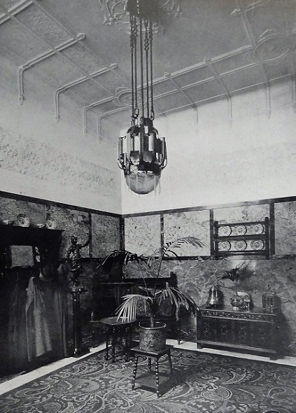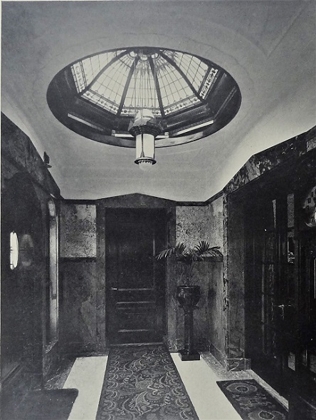 – Hal (met twee soorten marmer aan de muur en een palm die in de mode was):