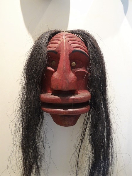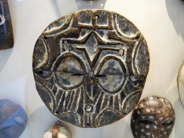 Een stukje erfenis van het volkenkundig museum Gerardus van der Leeuw hing in de vitrine op de kopse kant van de zaal . Masker uit Zaïre: