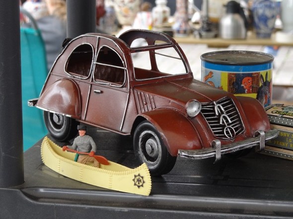 Lelijke eend van blik. Mogelijk huisvlijt, gezien het onbeholpen Citroënlogo. Nu ik hem weerzie had ik het karretje wel willen kopen: