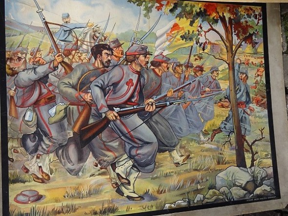 Stormaanval der dappere Zouaven, soldaten van de paus – schoolplaat gebruikt in het roomskatholiek onderwijs: