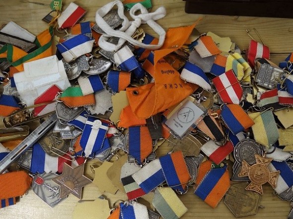 Medallies, waar mensen ooit een bult voor hebben gedaan. Nu een ongesorteerd hoop rommel waar niemand meer belangstelling voor heeft: