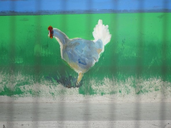 Op dit gedeelte staat een kip van het soort zoals de tolhuisbewoners ook hebben: