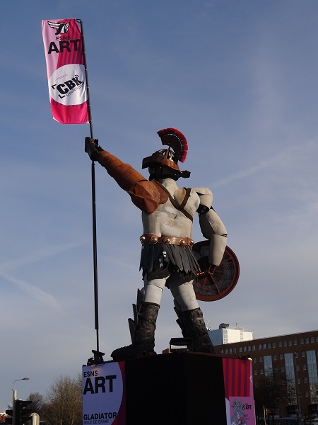 De naam van onze held is nog onbekend. Het Centrum voor Beeldende Kunst (zeg maar de kunstuitleen) heeft hem op een sokkel neergezet als vaandeldrager voor Eurosonic/Noorderslag: