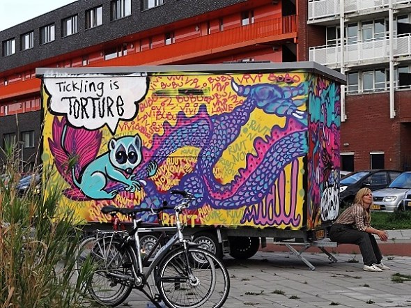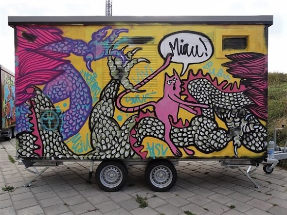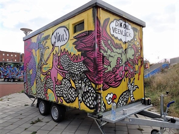 NB: de werfwagens maken deel uit van een vrije graffiti zône. Zie de uitzending van OOG TV van vandaag (helaas nog niet op YouTube).