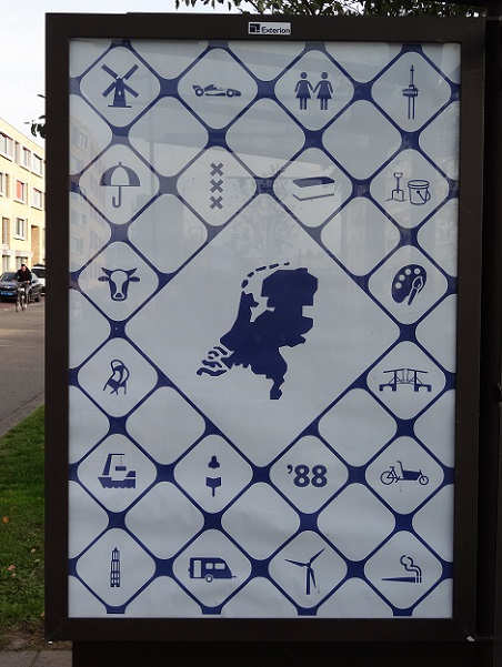 Het buitenreclamebedrijf Exterion wil tonen hoe trots het op Nederland is. Vandaar de pictogrammen met iconen of dingen die typisch Nederlands zijn. Je kunt ook zelf een icoon aan ze voorstellen of de posters bij ze bestellen. Zie hun website, waarop elk icoon een korte verklaring krijgt.