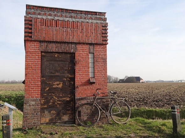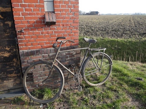 Aan die fiets zit spaak noch ketting, daar rijdt niemand mee weg. Aan de fiets en aan de deur herken je de hand van kunstenaar Gert Sennema. Dit monument is verwant aan diens dichte deur in de Stad-Groninger Folkingestraat.