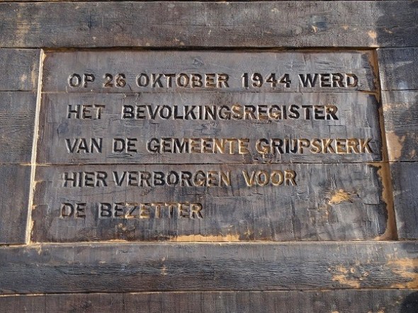 Een elektriciën van de Laagspanningsnetten verstopte hier de Grijpskerker bevolkingsadministratie. Het is eigenlijk een verzetsmonument: