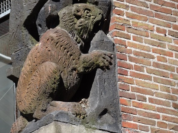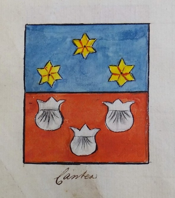 Canter – onderin drie gekroonde Jacobsschelpen (denk ik), weer zo’n teken dat Sint Jacob niet onbekend was in de stad: