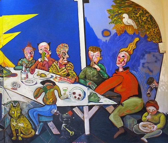 Er hoort een allesbehalve hermetisch gedicht bij waarin Lucebert ons voorhoudt waarom het gezamenlijk eten en drinken met een vrolijke deuntje erbij goed is: