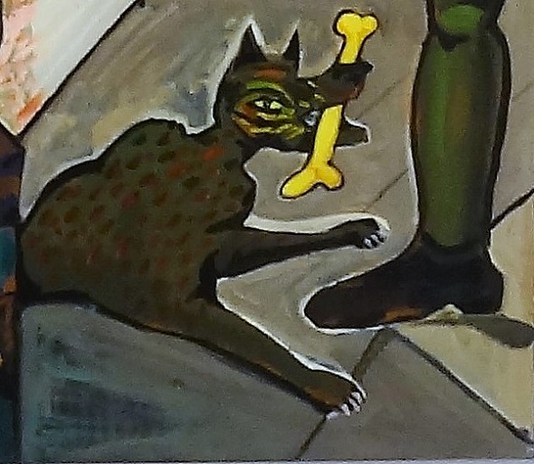 Er zitten fantastische details in dit werk, zoals deze hond met kluif: