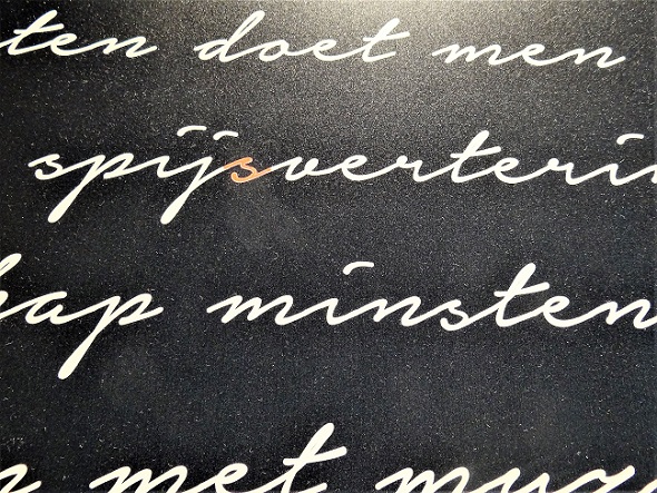 In het oorspronkelijke paneel met dit gedicht zat een foutje. In het woord spijsvertering ontbrak namelijk de s. Die is er met behulp van een fotobewerkingsprogramma alsnog in geplaatst, op zo’n manier dat de verbetering kenbaar blijft: