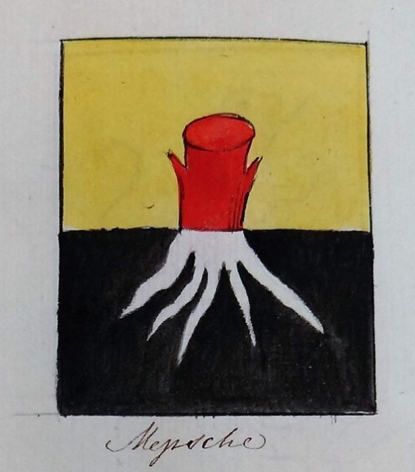 De bekende boomstronk met wortels van de familie De Mepsche die op dit weblog al meermalen gesignaleerd werd: