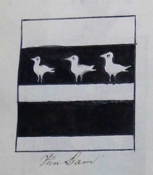 Geplaatst op: 9 augustus 2017 Hoort bij: Kunsten, Stad toen 3 reactiesOp zoek naar iets anders, stuitte ik vandaag op een boekje met Groninger familiewapens. Het betreft een handschrift, waarin die wapens op charmant naïeve manier getekend en ingekleurd zijn en getuige de ex libris voorin was het ooit in bezit van A. (Dolf) Pathuis, de genealoog en heraldicus die tevens hoofdarchivist was van het gewezen Rijksarchief aan de Sint Jansstraat. De datering van het werkje is wat moeilijk, het zou van iets voor 1800 kunnen zijn, maar ook van veel later. De 24 mooiste wapens heb ik eruit gepikt en een beetje opgepept: