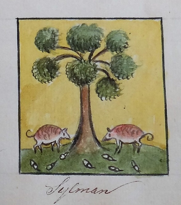 Hé kijk, daar hebben we de varkentjes van Sijlman weer. En dit keer liggen er inderdaad eikels onder hun boom: