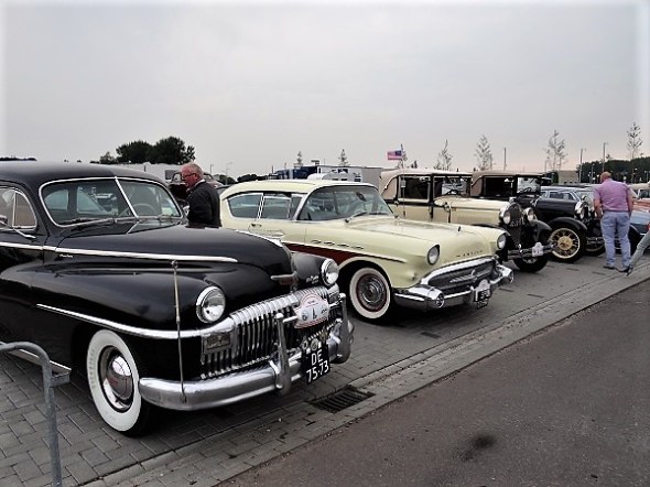 Met erachter hele rijen oldtimer ‘luxe auto’s’: