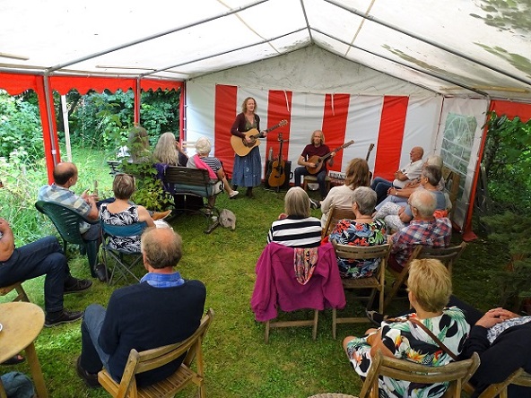 Doel van de tocht was een tuinconcert door Linde Nijland en Bert Ridderbos op Nieuw Statenzijl. Ze deden zowel evergreens en meezingers, als werk van Lindes nieuwe plaat Ten Years. Het werd een genoeglijke middag, ook door de inbreng van het publiek: