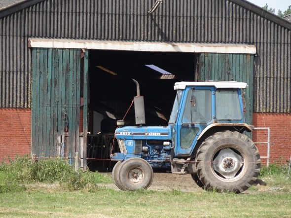 Tractor van een wat ouder model bij schuur Gaaikemadijk: