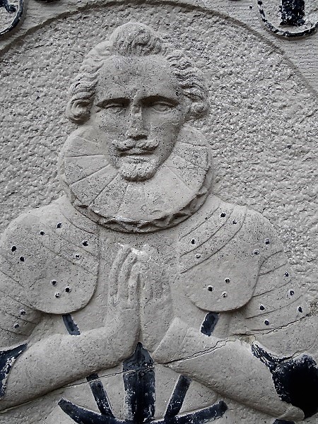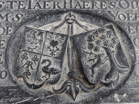 Ook nog even in de borg zelf gekeken. De hazewindhond als schildhouder boven het front blijkt duidelijk een reu: