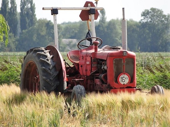 Bij Eenum in de buurt – oude tractor in strook gerst: