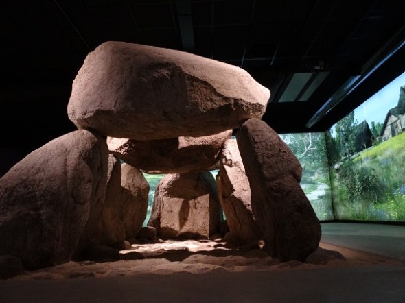 Die ut was nieuw voor me. Het hunebed van Heveskeresklooster staat er natuurlijk weer, nu met evocaties van het dagelijks leven in het Neolithicum op de achtergrond:
