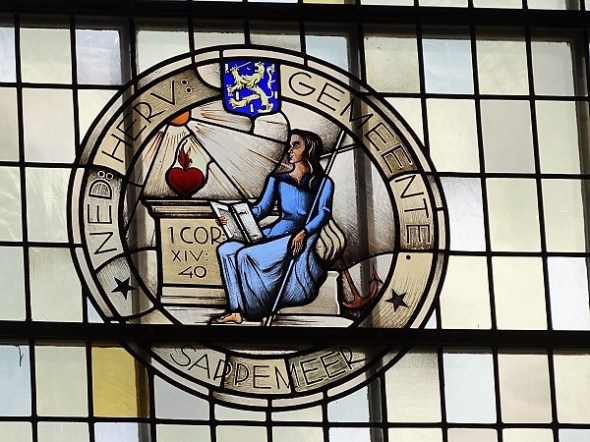 In de kerk van Oosterwijtwerd, die zo gerestaureerd is dat je zo min mogelijk van de restauratie ziet: